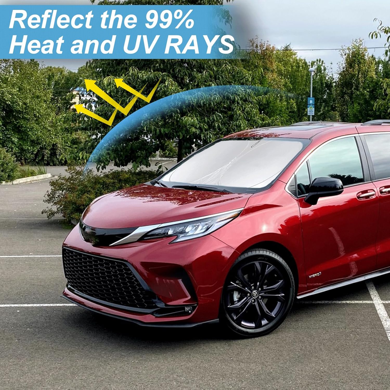 - [CUSTOM-FIT FRONT WINDSHIELD SUNSHADE] Automotive windshield sun shade is Specifically designed,which for Toyota Sienna 2021-2024 2025 L LE SE XLE Limited Van Minivan Car accessories. We have several size of car sunshade. Please measure your car size and refer to our size before your purchase. Once installed it won't have gaps, sags or slumps like other car sun shade windshield
