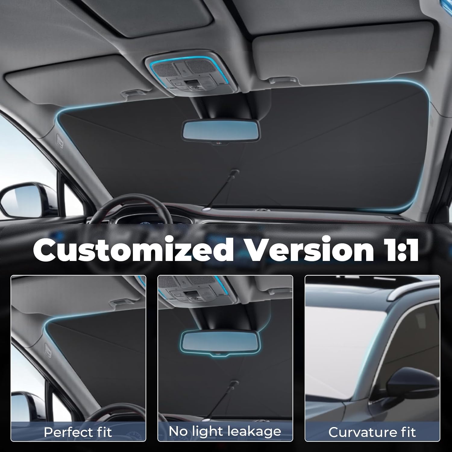 - Convenient Foldable Design: What sets our windshield sun shade apart is its innovative foldable design. When not in use, simply collapse it down and store it in your panel compartment or trunk. This space-saving feature makes it easy to carry and ensures that you always have sun protection at hand whenever you need it.