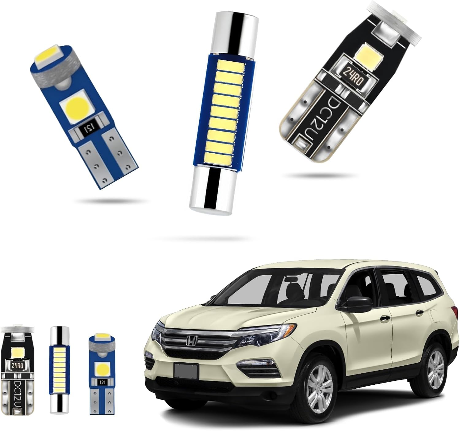- Versatile Lighting for Interior & Exterior Use: This versatile LED Interior Car Lights kit is ideal for various uses inside your Pilot, including the dome light, map light, door lights, and footwell lighting. Enhance your Honda Pilot's interior aesthetics or use them for practical purposes such as increased visibility when loading or unloading at night. These LED light kits also provide a modern, stylish look and are perfect for Pilot enthusiasts who want to customize their vehicle lighting.