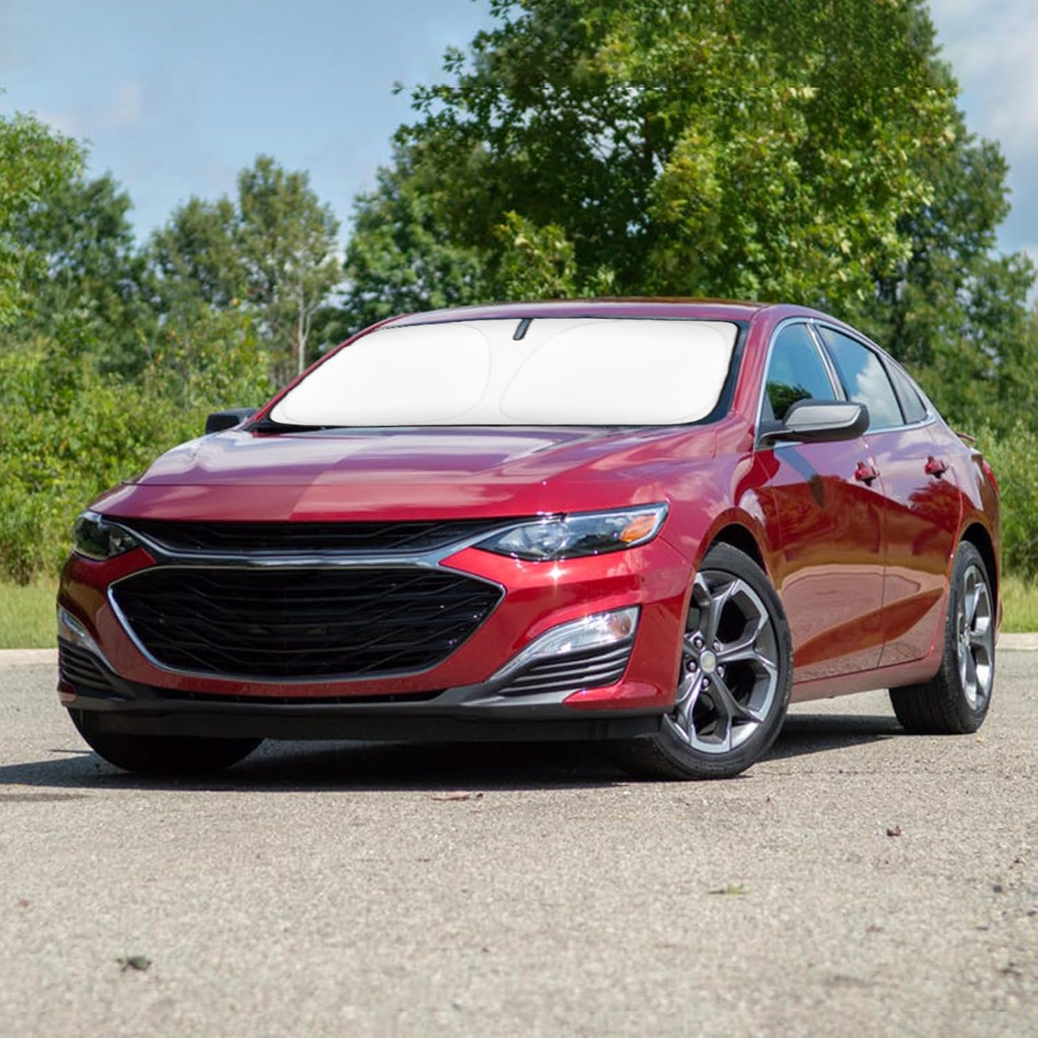 - 【Vehicle Specific】Our Windshield Shade Cover custom fit for Chevrolet/Chevy Malibu 2016-2024 2025 Accessories,Full covered your windshield,No Gap,100% Perfect fit. The precise fit design and reinforced steel ring are sufficient to allow the sun shade to precisely fit the front window without the need for suction cups to hold it in place, effectively protecting your car from the sun's rays.