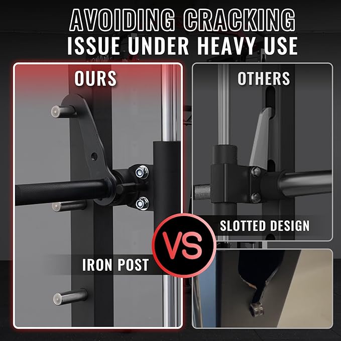 • [Home Gym System Design] Equipped with individual dual pulley systems, the M4 Smith Machine is an ultimate training station for your home gym, which means you can do superset with it and training together with your family and friends. Stop wasting your time cleaning up the messed up floor, M4 comes with great storage capacity that keeps your home gym organized. (Storage Racks with 6 weight plate pins and 2 barbell holders)