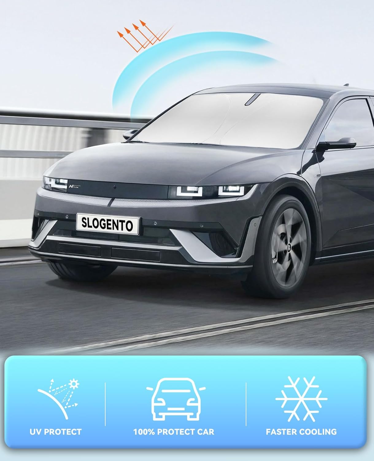 - 【Vehicle Specific】Our Windshield Shade Cover custom fit for Hyundai Ioniq 5 2022-2024 2025 Accessories ,Full covered your windshield,No Gap,100% Perfect fit. The precise fit design and reinforced steel ring are sufficient to allow the sun shade to precisely fit the front window without the need for suction cups to hold it in place, effectively protecting your car from the sun's rays.