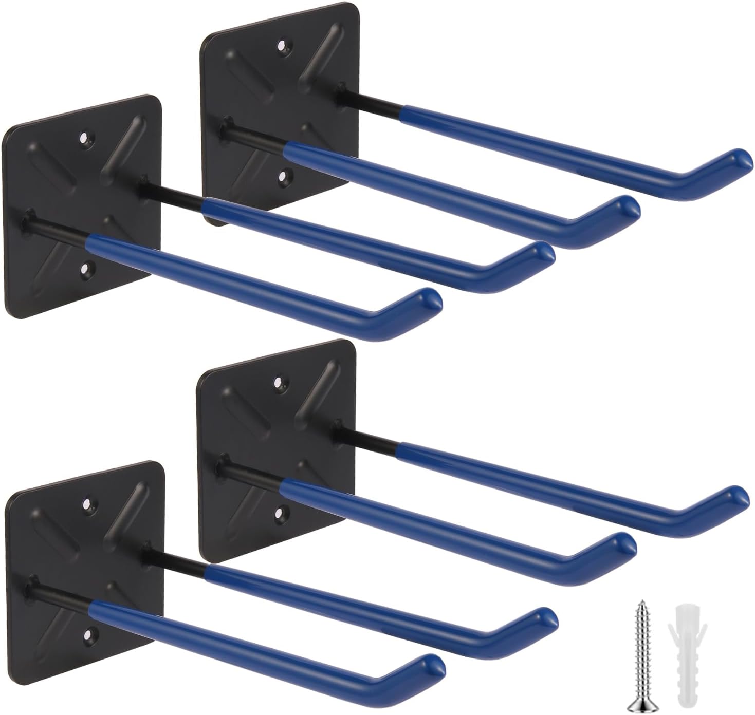 Steel Garage Storage Hooks Wall Tool Organizer, 10 Inch Garage Hook Heavy Duty Utility Storage Hangers Blue for Ladders, Chairs, Garden Tools, Set of 4