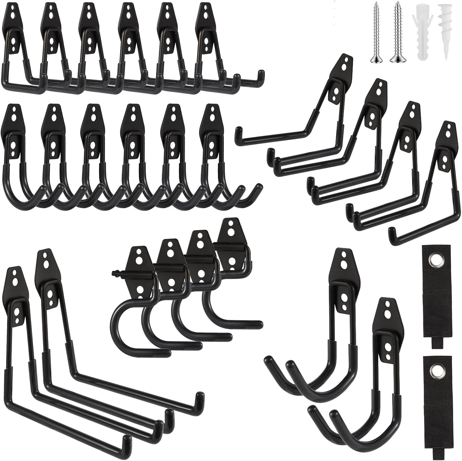 Garage Hook Heavy Duty Wall Storage Hangers, 26 Pack Garage Storage Hooks Steel Tool Black for Ladders, Ropes, Garden Tools