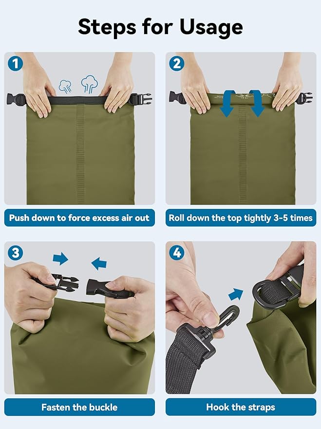 • Durable - Made of 0.02 in (0.5 mm) thick upgraded wear-resistant PVC material, it's suitable for all kinds of outdoor activities. Waterproof bag is well adapted to various weather and environment