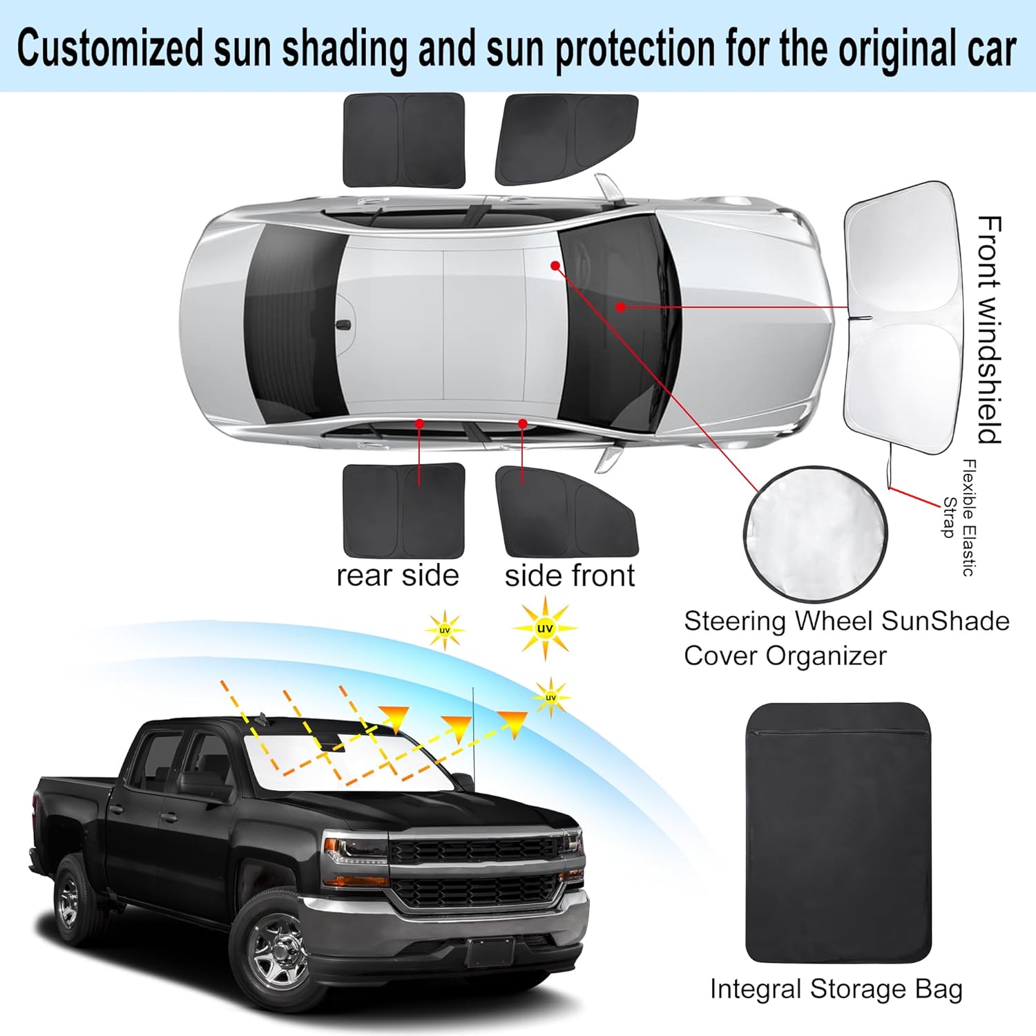 - Customized Design:The sun shade custom fit for Chevrolet/Chevy Silverado 2014-2019.Our window shade is according to the car size design,perfectly fit your car and does not need to trim.windshield sun shade solve the problem of light leakage and incompatibility of the old umbrellas.The sunshade designed for Chevrolet/Chevy Silverado.