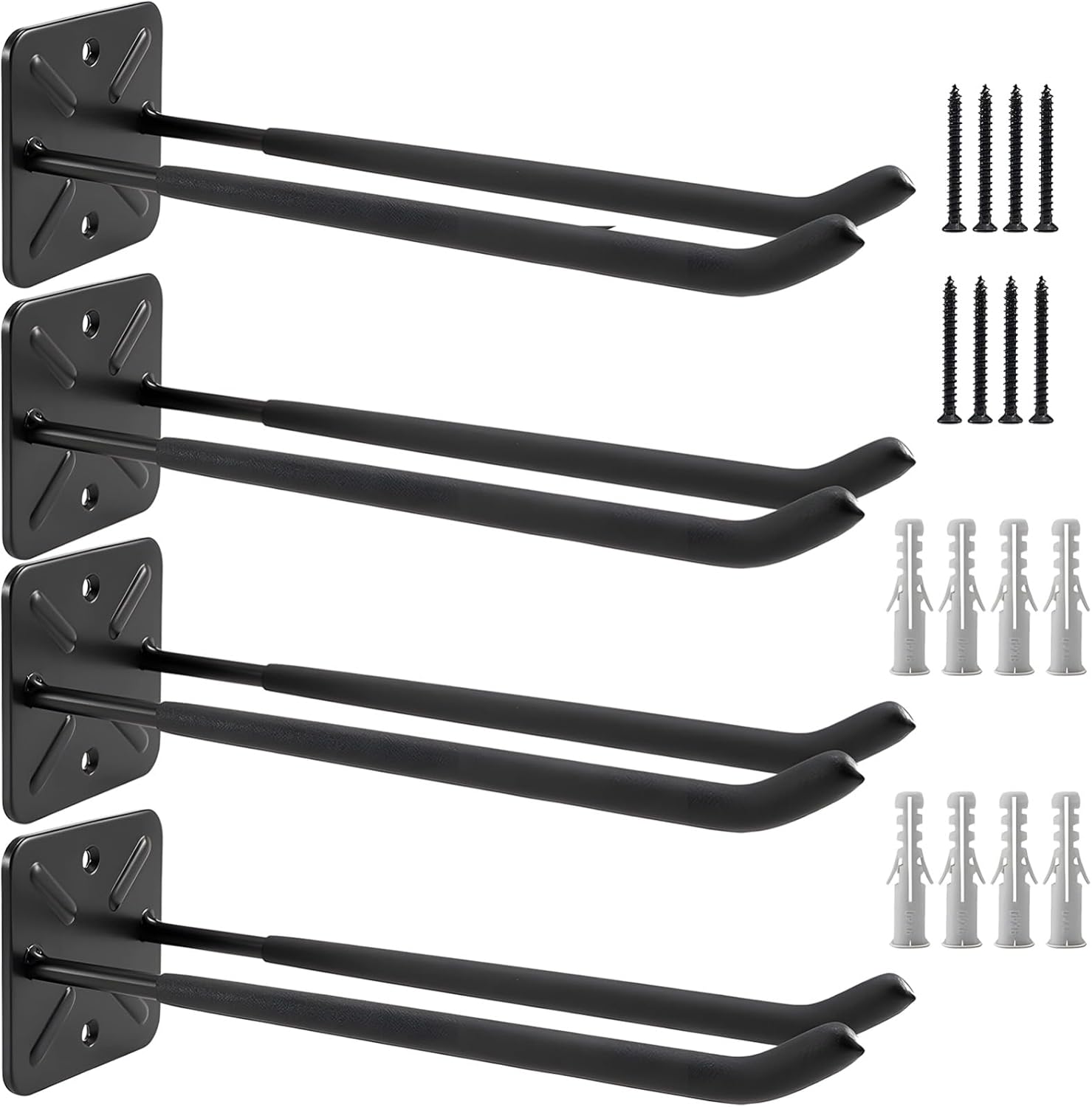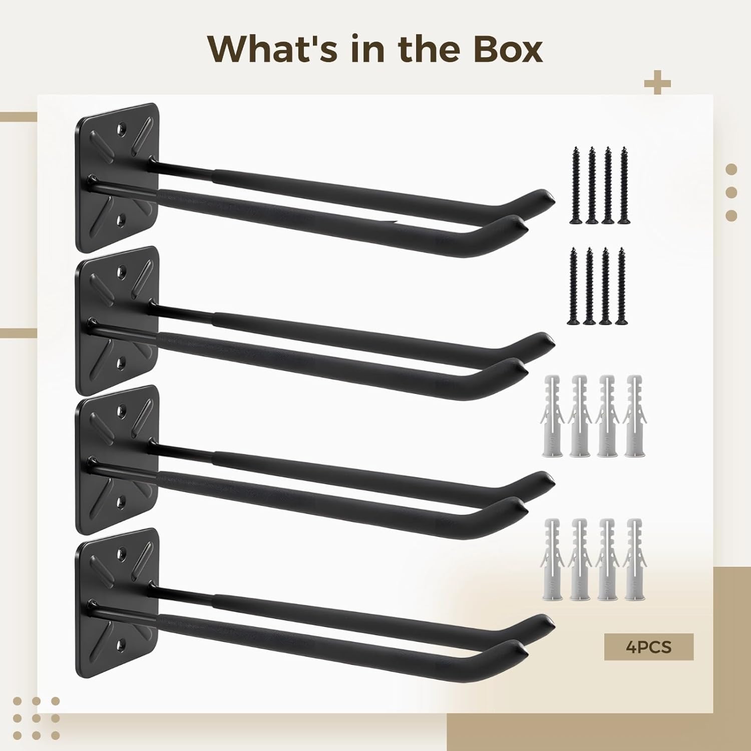 Heavy Duty Garage Hooks and Tool Organizer, 12.4 Inch Wall Mount Hangers, Garage Hooks for Car Tires, Ladders, Chairs, Strollers, Power Tools, Garden Tools - 4 Pack