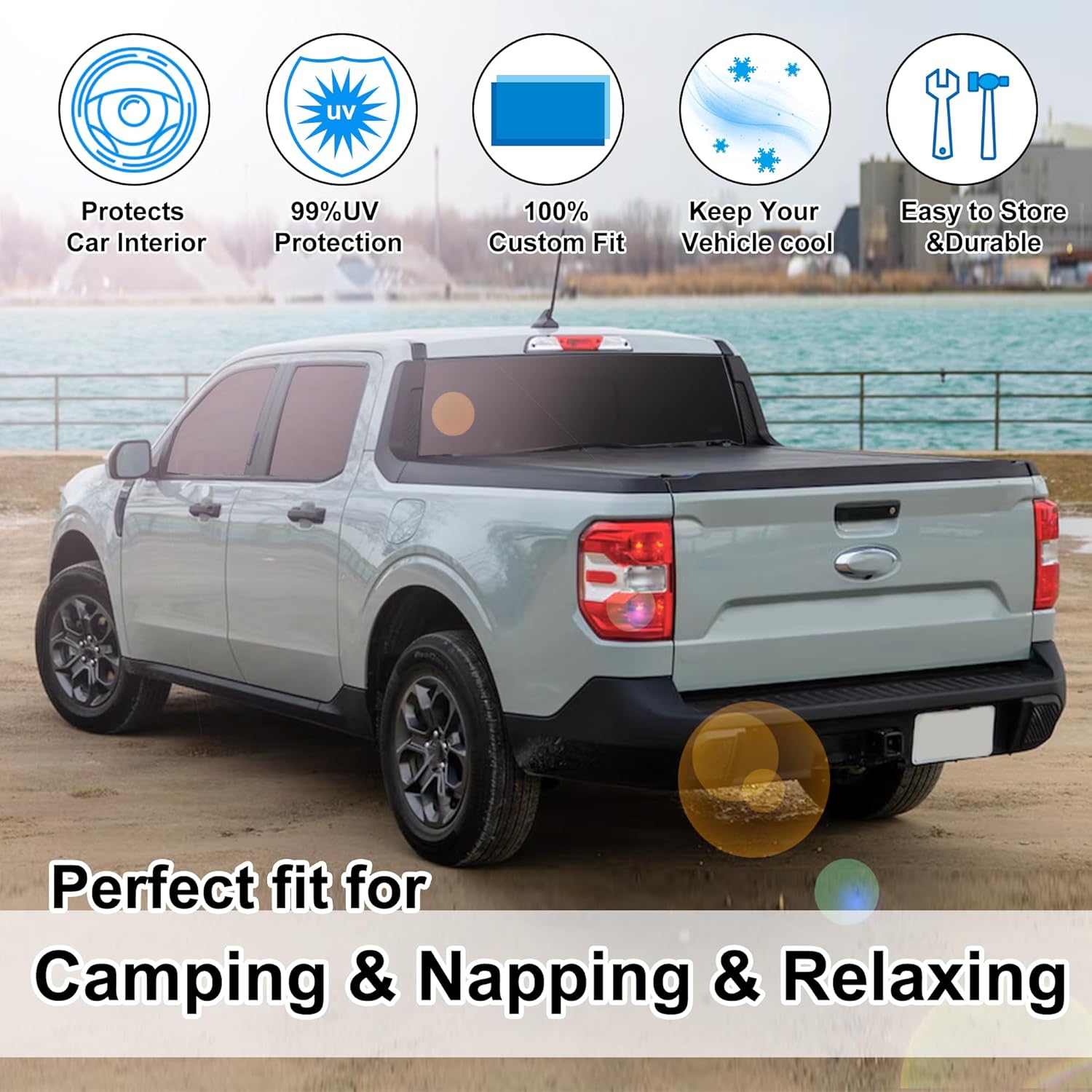 - Customized Design:The sun shade custom fit for Ford Maverick 2022 2023 2024 2025.Our window shade is according to the car size design,perfectly fit your car and does not need to trim.windshield sun shade solve the problem of light leakage and incompatibility of the old umbrellas.The sunshade designed for Ford Maverick.