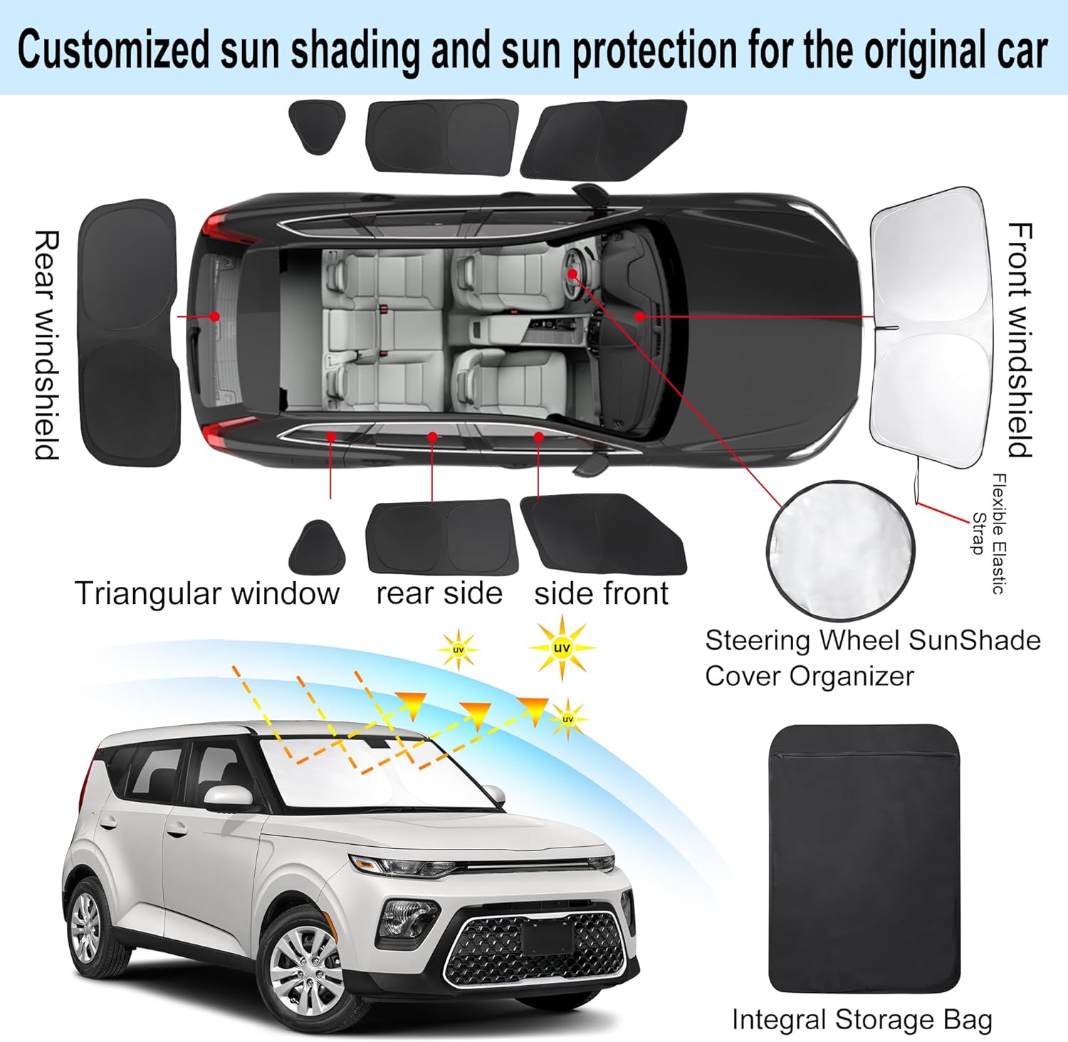 - Customized Design:The sun shade custom fit for Kia Soul 2020-2024 2025.Our window shade is according to the car size design,perfectly fit your car and does not need to trim.windshield sun shade solve the problem of light leakage and incompatibility of the old umbrellas.The sunshade designed for Kia Soul.