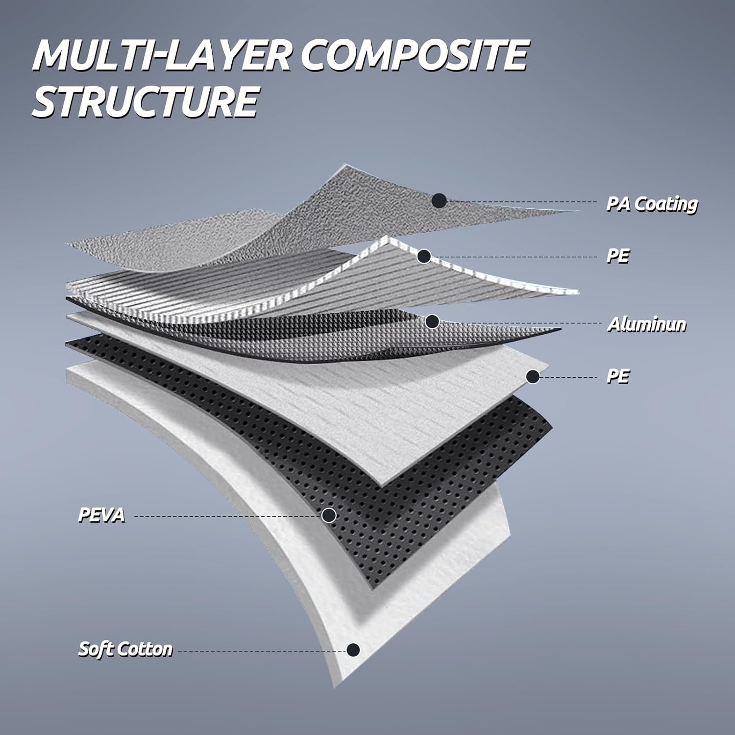 - High-Quality Material: iautaxesoriz car cover features a multi-layer composite material design. Layer 1 is PA coating, providing 100% waterproofing. Layers 2 consist of PE, enhancing breathability and maintaining suitable interior temperatures. Layer 3 is an aluminum membrane that reflects 99% of UV rays, reducing UV damage. Layers 4-5 are PEVA material, with strong tear resistance to maintain integrity in harsh weather. Layer 6 is soft cotton, effectively safeguarding the car's paint.