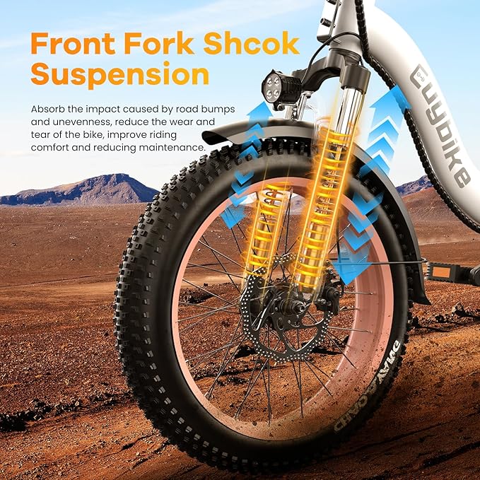 - 【Superior Front Suspension and Dual Disc Brakes】: The ebikes for adults features front fork suspension, absorb any bumps or shocks encountered on the road, providing a smooth and comfortable ride. 180mm Dual Disc Brakes enables the ebike to stop quickly and smoothly, shortening the braking distance even on a wet road. In combination with 7-speed gear, discover more flexibility of quick climbing response and experience the ultimate electric mountain bike riding experience!