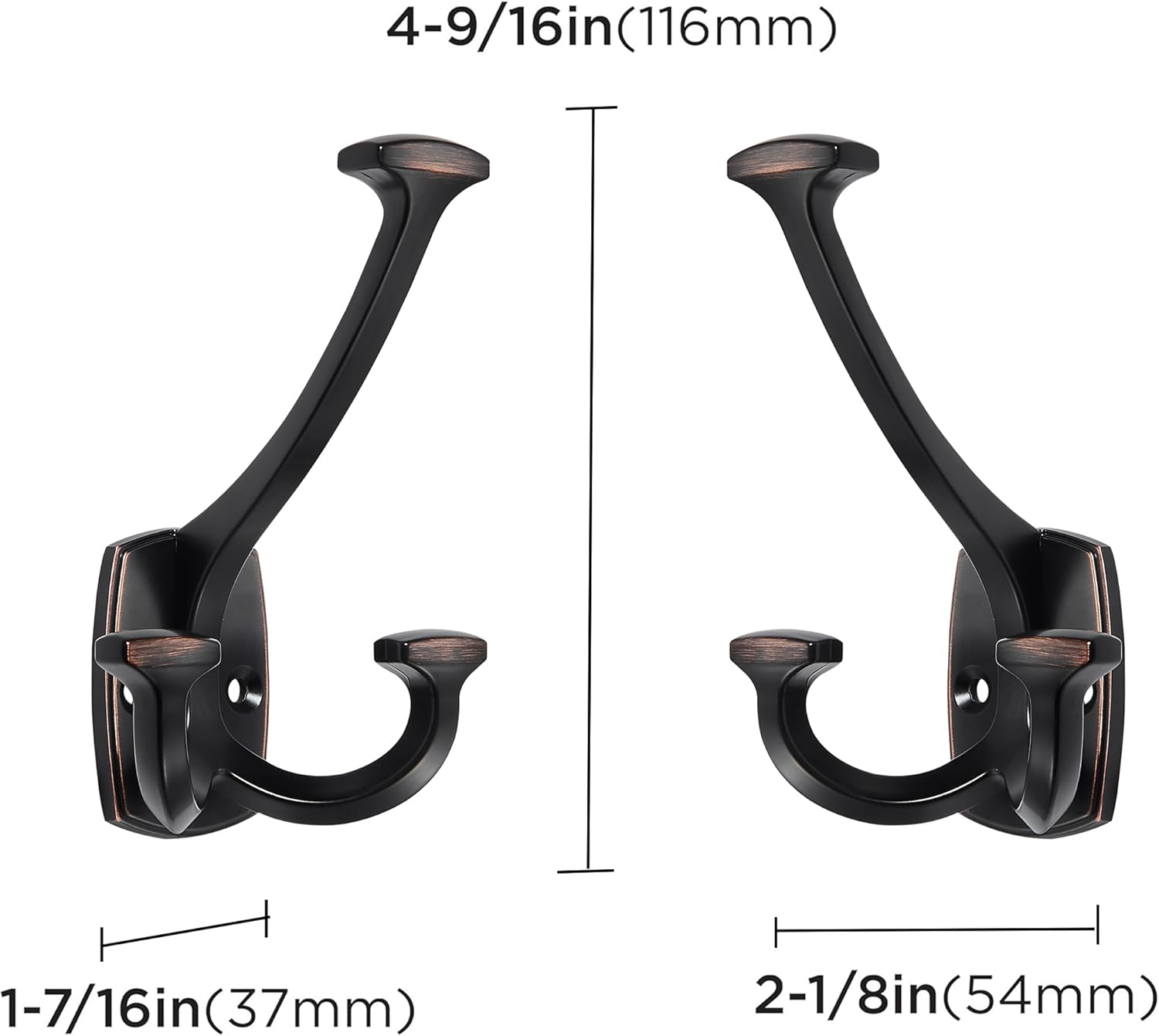 Large Wall Double-Sided Hook 5 Pack Oil Rubbed Bronze Hook Decorative Heavy Duty Solid Large Coat Hooks for Towel Hanging Coats Robe Towel Bags Door Back 2 Prong Hooks