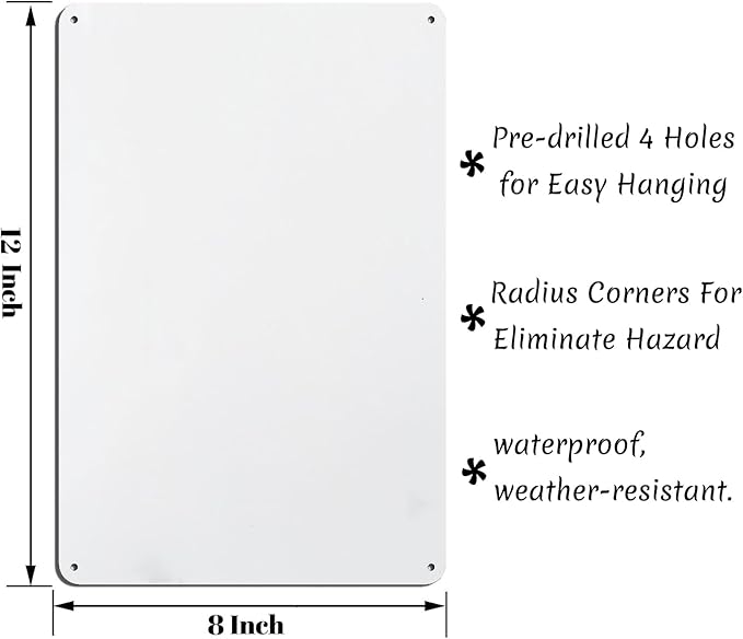 - 【Easy to Install】The tin sign comes with 4 pre-drilled holes, making installation quick and hassle-free. Whether you choose to hang it with a rope or secure it with nails, no complicated tools or steps are required.