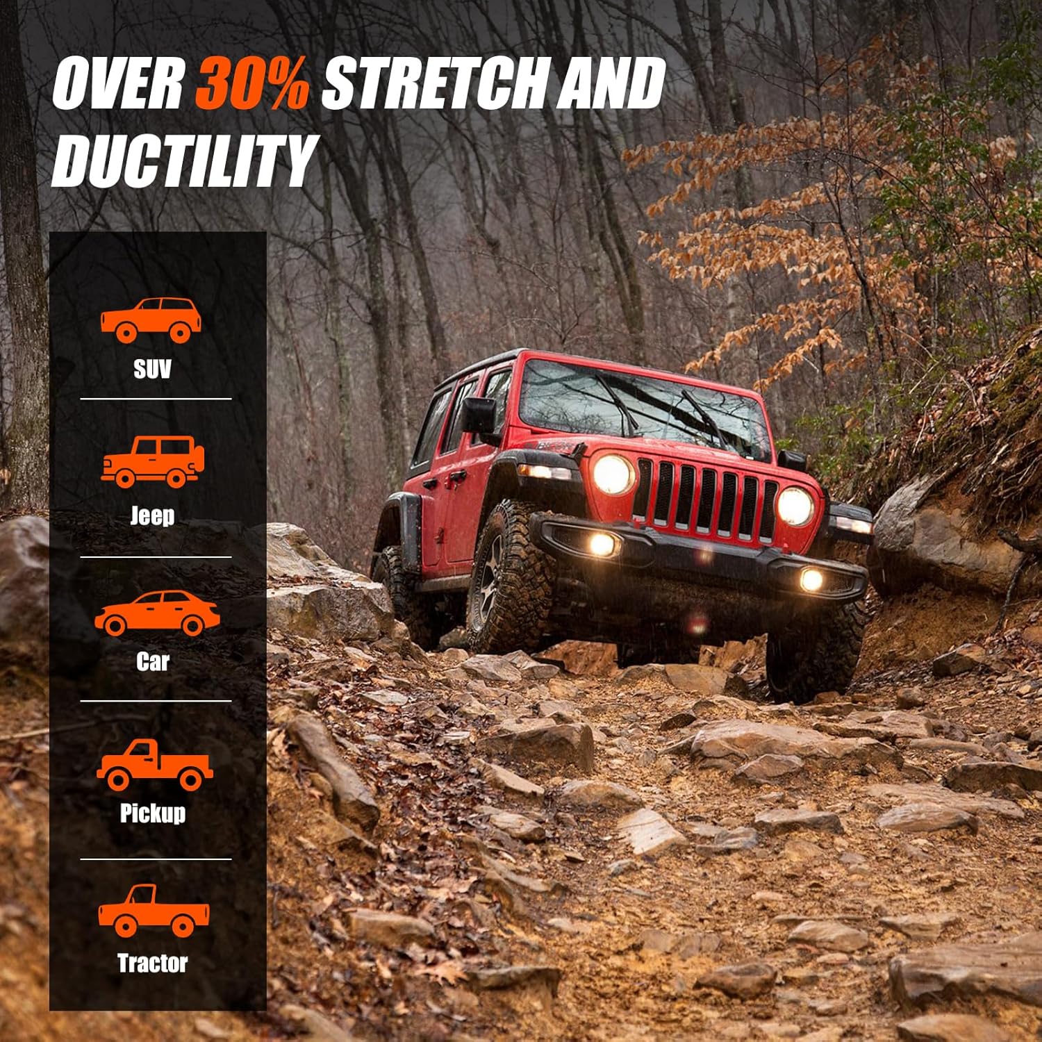 - [Stretches Like a Pro] - Unlike static ropes, this 48,000lbs break strength recovery strap elongates up to 30% under load, reducing shock on your vehicle’s frame and tow points. Safer for you and your rig.