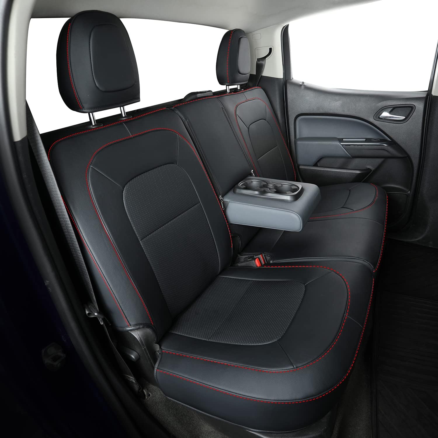 LUCKYMAN CLUB Chevy Colorado Seat Covers, fit for 2023 2024 2025 Colorado Crew Cab Z71 LT ZR2 Work Truck with Faux Leather (Black&Red)