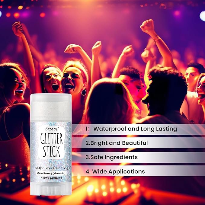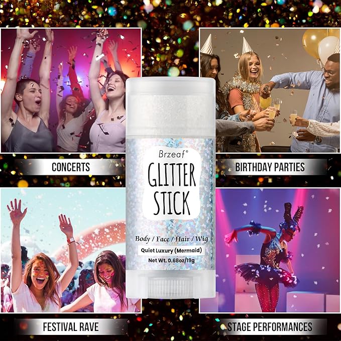 - 【Wide Range of Applications】Our glitter stick makeup can be used in many applications. For example, music festivals, concerts, birthday parties, stage performances, holiday events and various other occasions. You can in use mermaid glitter cream to decorate your face, hair, body, eye shadow and other various parts. Let your makeup shine all over, let the pearlescent illusion hold your beauty.