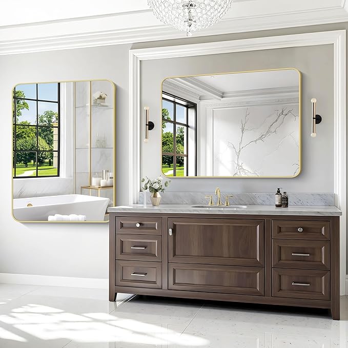 Gold Bathroom Mirror,36x48 inch Wall Mirror for Bathroom Wall Mounted,Round Rectangle Mirror for Bathroom Over Sink,Modern Frame for Home Decor Living Room,Bedroom Entryway,Horizontal/Vertical
