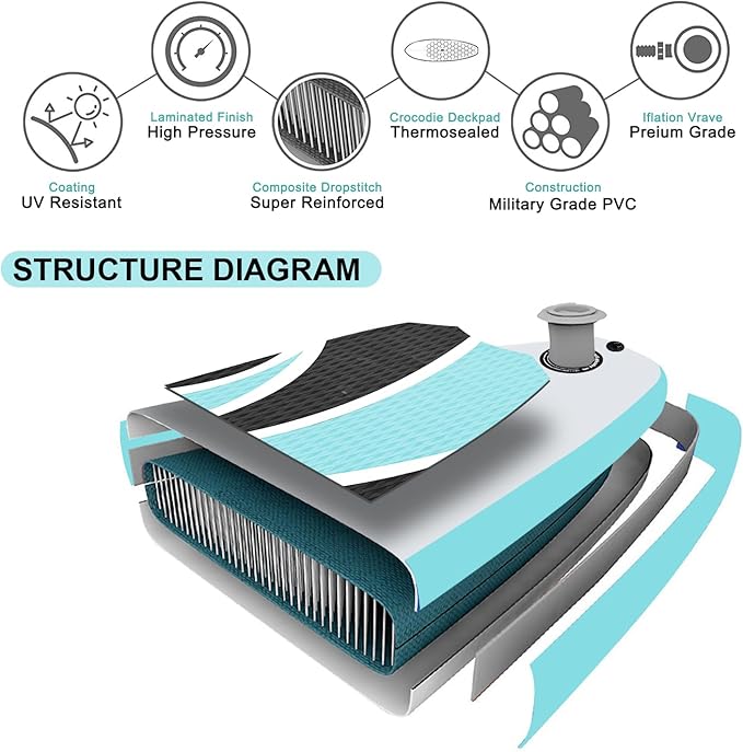 - 🏆Ultra-Stable & Compact Inflatable SUP Design: Experience unmatched balance on the 10'x30"x6'' inflatable stand up paddle board, engineered with a wide 30'' deck and 6'' thickness for superior stability in lakes, rivers, and small waves. Crafted from military-grade PVC, this lightweight SUP (only 17.5 lbs) combines durability and portability, making it ideal for beginners and pros alike. Perfect for yoga, fishing, or cruising – the streamlined design reduces drag for effortless gliding.