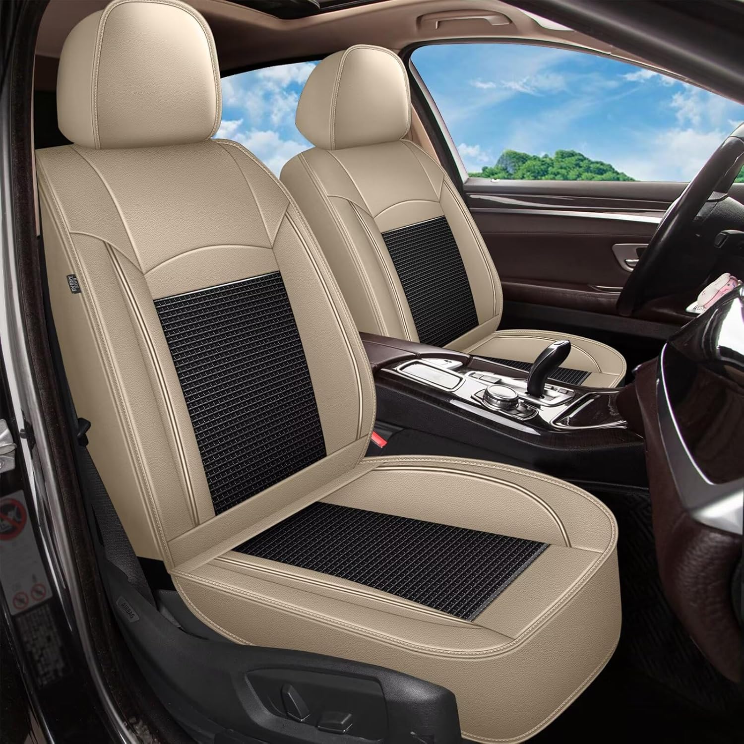 - 🔥🚗【High-quality Material】: Super breathable series are constructed with durable faux leather seat covers and ice silk special woven fabric center sections, durable and waterproof, bring breathable comfort experience. Non-slip fabric is used on the bottom layer, keep the covers in place, would not easy to slide.