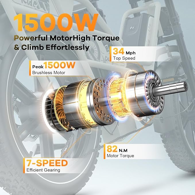 • ๐๐จ๐ฐ๐ž๐ซ๐Ÿ๐ฎ๐ฅ ๐๐ž๐š๐ค ๐Ÿ๐Ÿ“๐ŸŽ๐ŸŽ๐– ๐Œ๐จ๐ญ๐จ๐ซ:This electric bike is powered by 1000W(Peak 1500W) brushless motor, easily reach a top speed of 34 MPH. With strong driving force and climbing hills ability, climbing 30ยฐslopes, can conquer various terrains such as beaches, mountains, snow, city streets.If you like thrills and challenges, you can also ride this mountain Ebike for a non-stop adventure