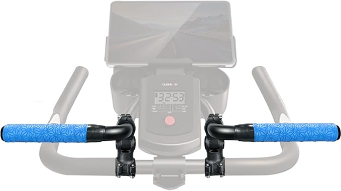 - Thoughtfully Design: Compatible with indoor exercise bikes (Spin bike, Peloton bike, Stationary bike, Treadmill) or bicycle handlebars with a clamping size ranging from 26mm to 34mm. The included handlebar grips can be installed on the extender bars for added comfort during workouts. The grips feature a specialized ergonomic design with an anti-slip diamond rubber surface, providing better shock absorption and reduced pressure. Extender bar diameter: 22.2mm.