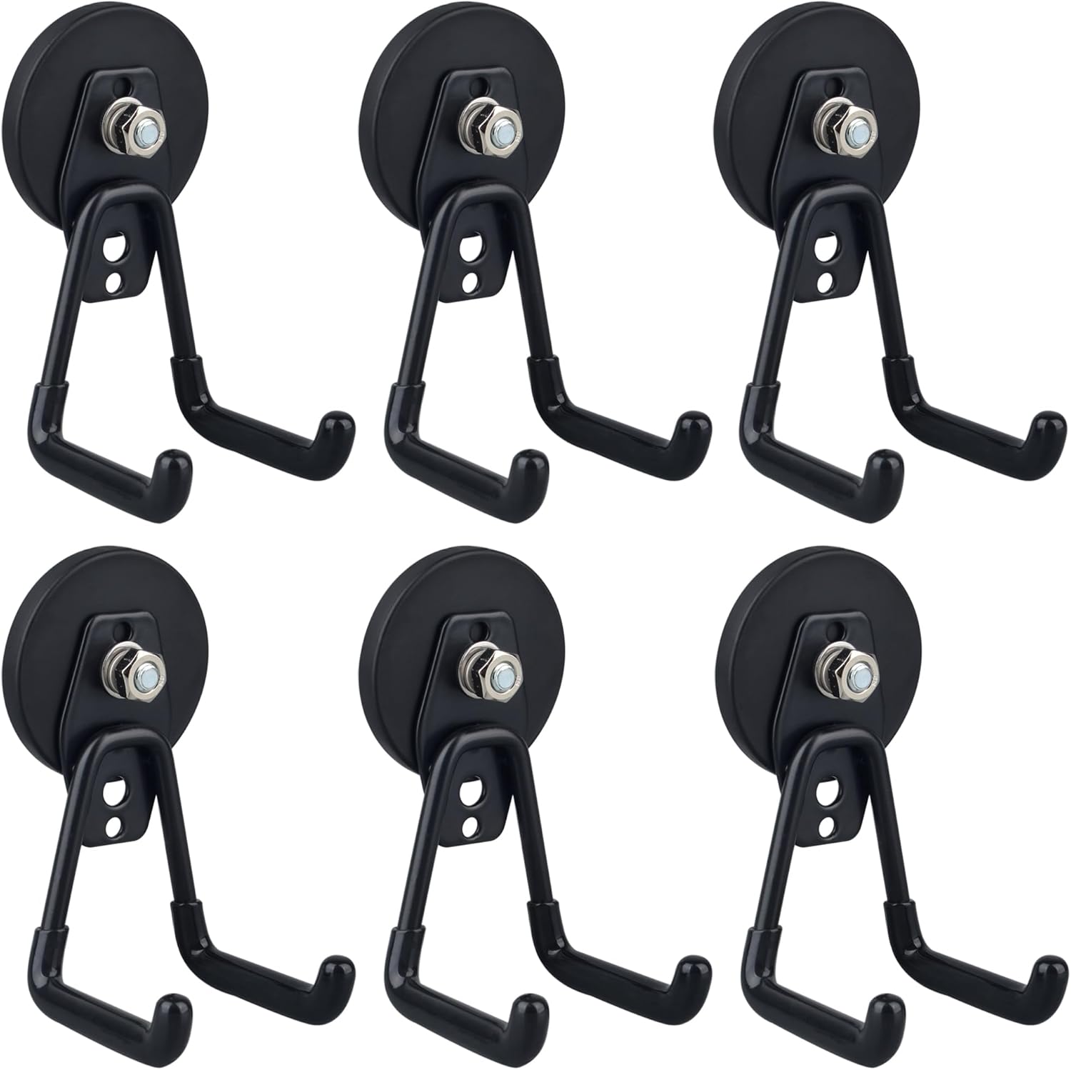ULIBERMAGNET Heavy Duty Magnetic Garage Hook,6 Pack Strong Large Magnet Hooks for Power Drill,Garden Tools,Hose,Pegboard,Garage, Workshop,Magnetic Storage Hooks for Indoor Outdoor Hanging(Black)