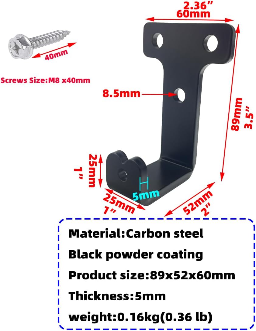 - Heavy duty wall mount J hooks, each hook can carry 180lb