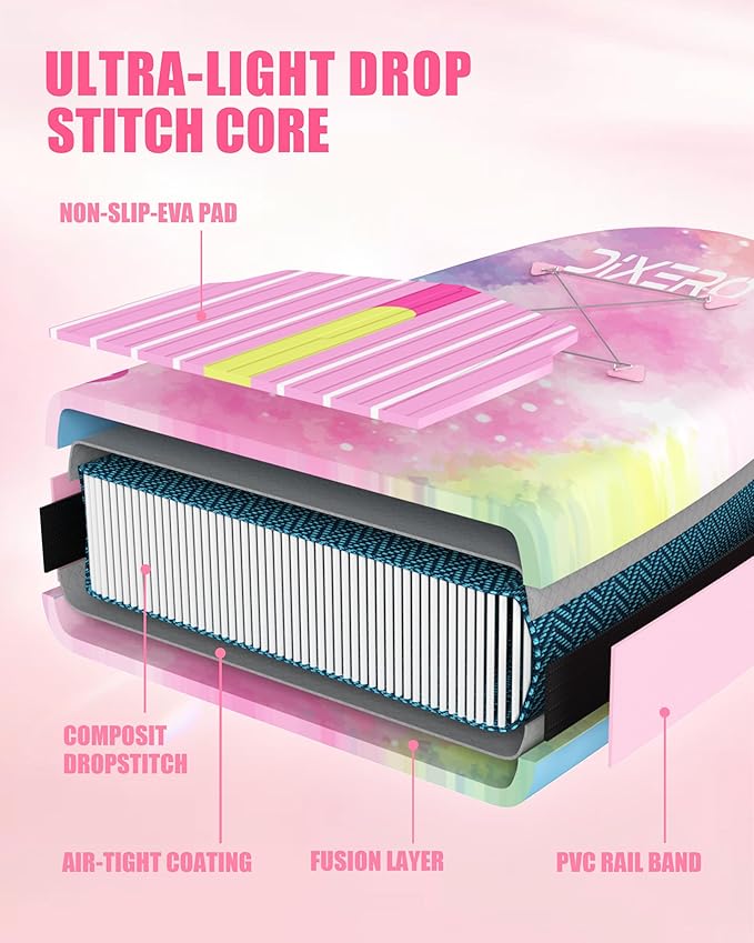 - 【𝗨𝗽 𝘁𝗼 400 𝗟𝗕𝗦 & 𝗠𝗼𝗿𝗲 𝗕𝗮𝗹𝗮𝗻𝗰𝗲 𝗕𝗼𝗮𝗿𝗱 𝘄𝗶𝘁𝗵 𝗘𝘅𝘁𝗿𝗮 𝗪𝗶𝗱𝗲 𝟯3", 𝟮 𝗥𝗶𝗱𝗲𝗿 𝗙𝗿𝗶𝗲𝗻𝗱𝗹𝘆】Dixero runeed series inflatable stand up paddle board for adults is 1 or 2 inches wider than other inflatable sup board, up to 400 lbs weight capacity make it more suitable for 2 person paddle board, so you can take your family or pets together. The extra-wide design balance fishing paddle board creates an incredible stable experience for all skill levels