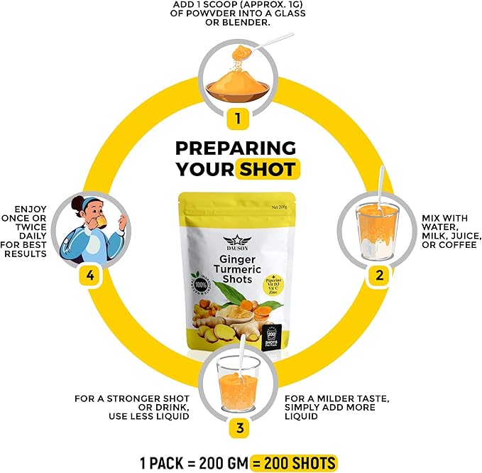 Ginger Turmeric Supplements with Piperine, Orange, Vitamin C, Vitamin D3 & Zinc | Ginger Turmeric Shots for Joint, Heart, Brain, Gut & Skin Health | 200 Servings | Ayurvedic | Powder