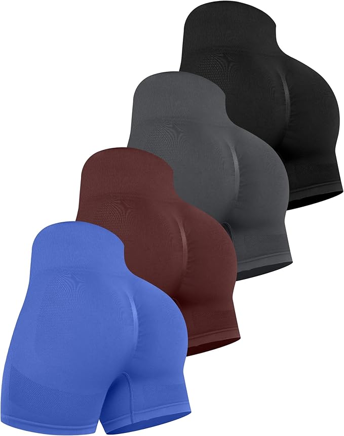 CHRLEISURE Women's 4 Packs Workout Gym Shorts, High Waisted Butt Lifting Scrunch Butt Seamless Booty Shorts