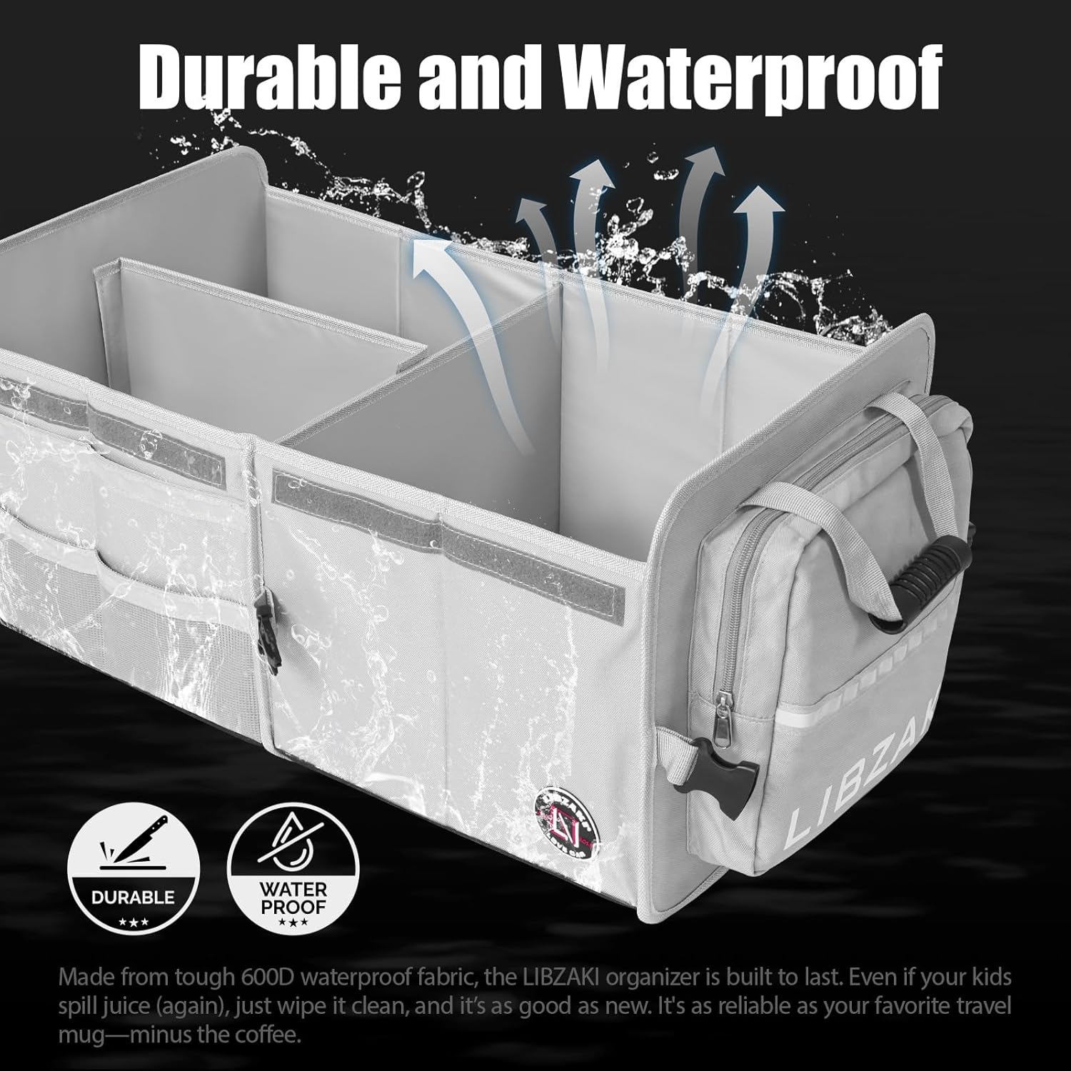 - Rugged Car Storage Organizer Built to Last Engineered for heavy-duty use! Both sizes feature 600D tear-resistant Oxford fabric + reinforced base, making this trunk organizer for car waterproof and crush-proof. Safely holds 66 lbs of cargo without sagging – from car accessories to emergency kits.