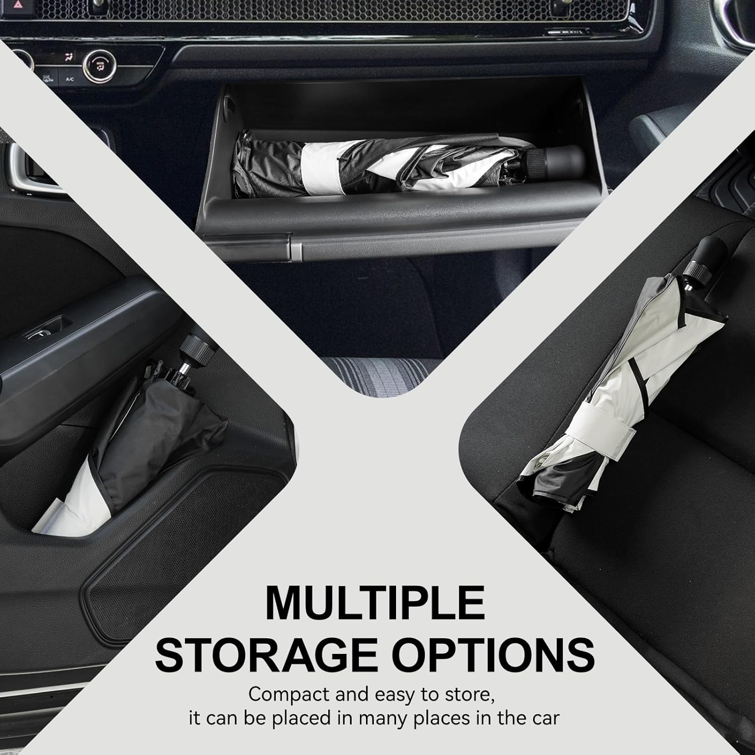 - PORTABLE: Unlike traditional double-loop sunshades, Raspillere umbrella style sunshade folds down to an incredibly small size. It can easily fit into small in-car storage compartments or even your bag, making it convenient to carry and store, saving valuable space in your vehicle.