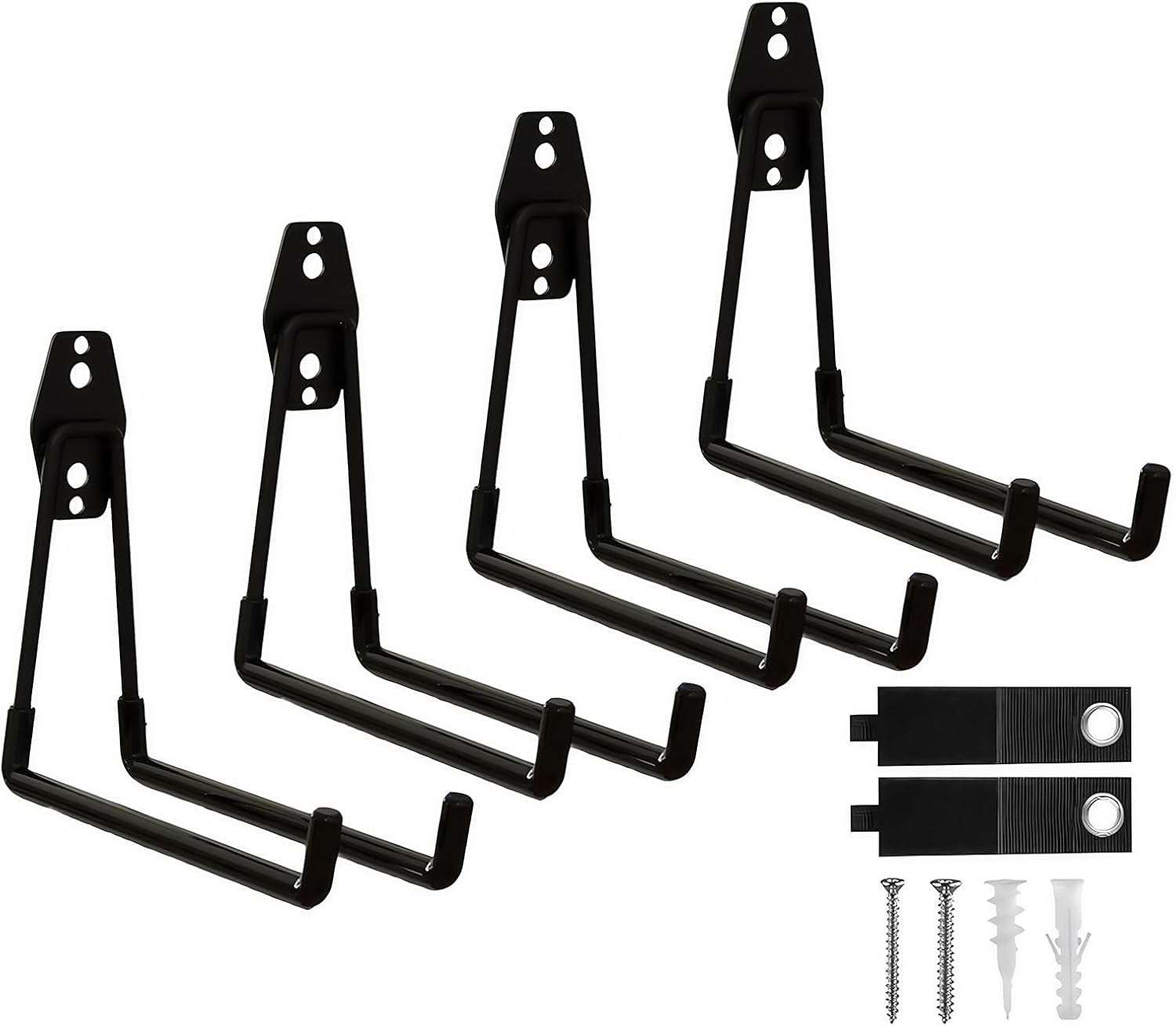 - SET CONTENTS AND USAGE: The set includes 4 large black square ladder hooks, measuring 7.7x6.3x2.95 inches, ideal for hanging bulky and heavy items like ladders, bicycles, etc. The garage wall organizer black anti-rust coating enhances visibility in low-light environments