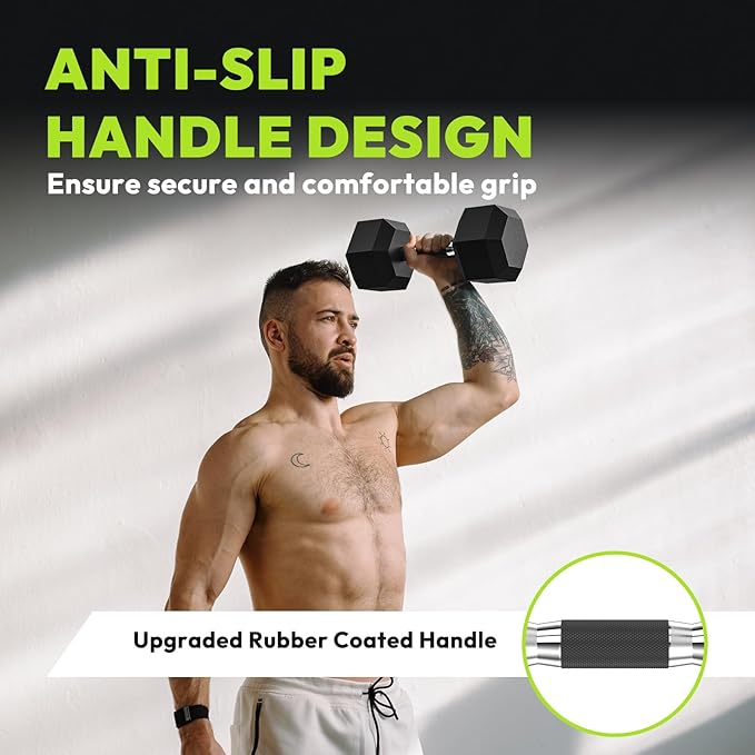 - Hexagonal Design for Stability & Practical Storage: The unique hexagonal shape prevents the dumbbells from rolling, providing a stable base during workouts. This design also makes storage easy and convenient, adding practicality to your fitness routine.