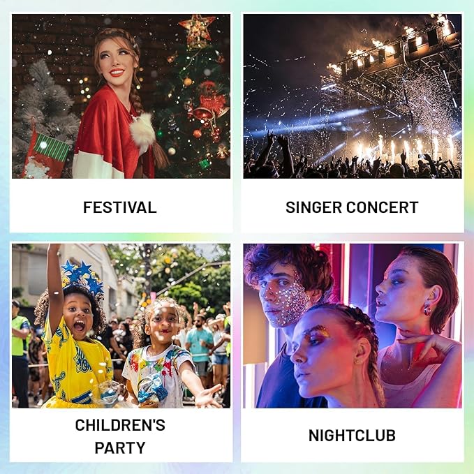 - Laser Flash Powder:This body glitter is made from holographic glitter, the glitter is lightweight and durable, designed in an easy to use tube with a large 50ml capacity. The color and shine of the laser glitter changes with the viewing angle, just like the brilliant colors of the rainbow, making you stand out from the crowd.