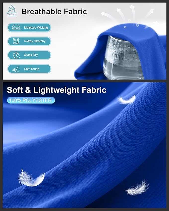 - Quick Dry & Moisture-Wicking: Crafted from quick-drying, moisture wicking fabric that effectively wicks away sweat, ensuring you stay dry and comfortable throughout the day