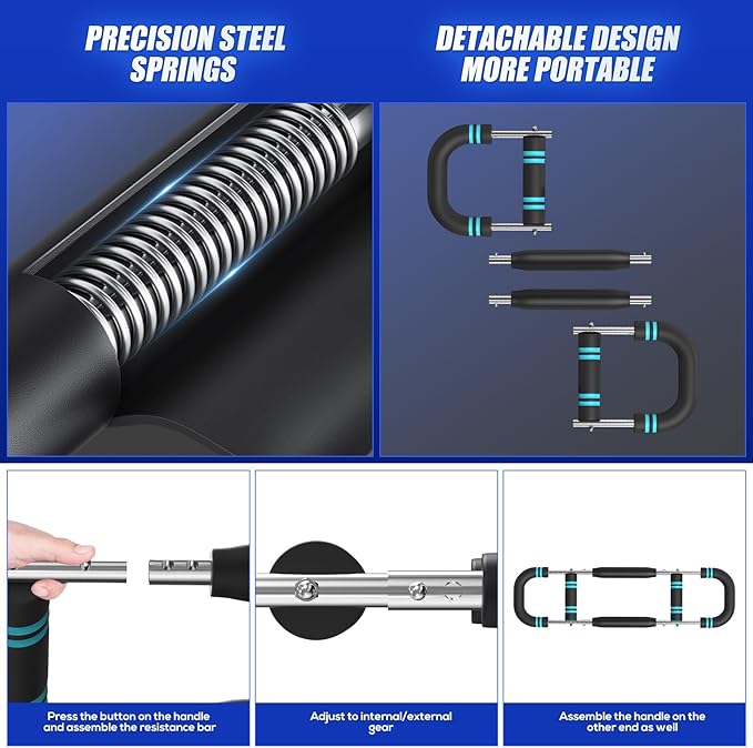- 【Adjustable Resistance】Customize your workout with the Twister Arm Trainer, which features three adjustable intensity levels, ranging from 60 to 110 pounds of resistance. You can modify both the width and resistance level by adjusting the installation distance of the spring rod and handle, ensuring optimal training results tailored to your fitness level.