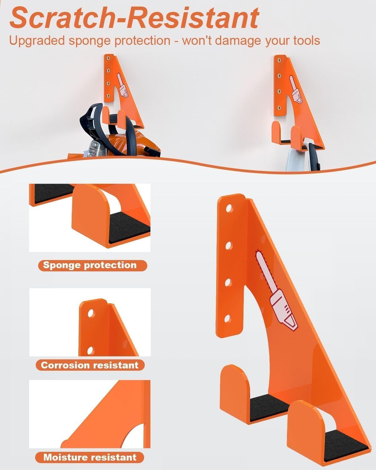 - 💪【Precision Hook Design with Scratch Protection】Inner hook distance: 1.38" from wall (hook size: 1.38"W x 1.77"D). Thick sponge liners protect chainsaw surfaces from metal scratches.