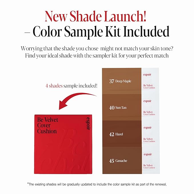 espoir [NEW] Be Velvet Cushion Foundation | Quick and Easy Coverage with Long-lasting Color by Zero Oxidation (#45 Ganache, 0.46 Ounce (Pack of 1))