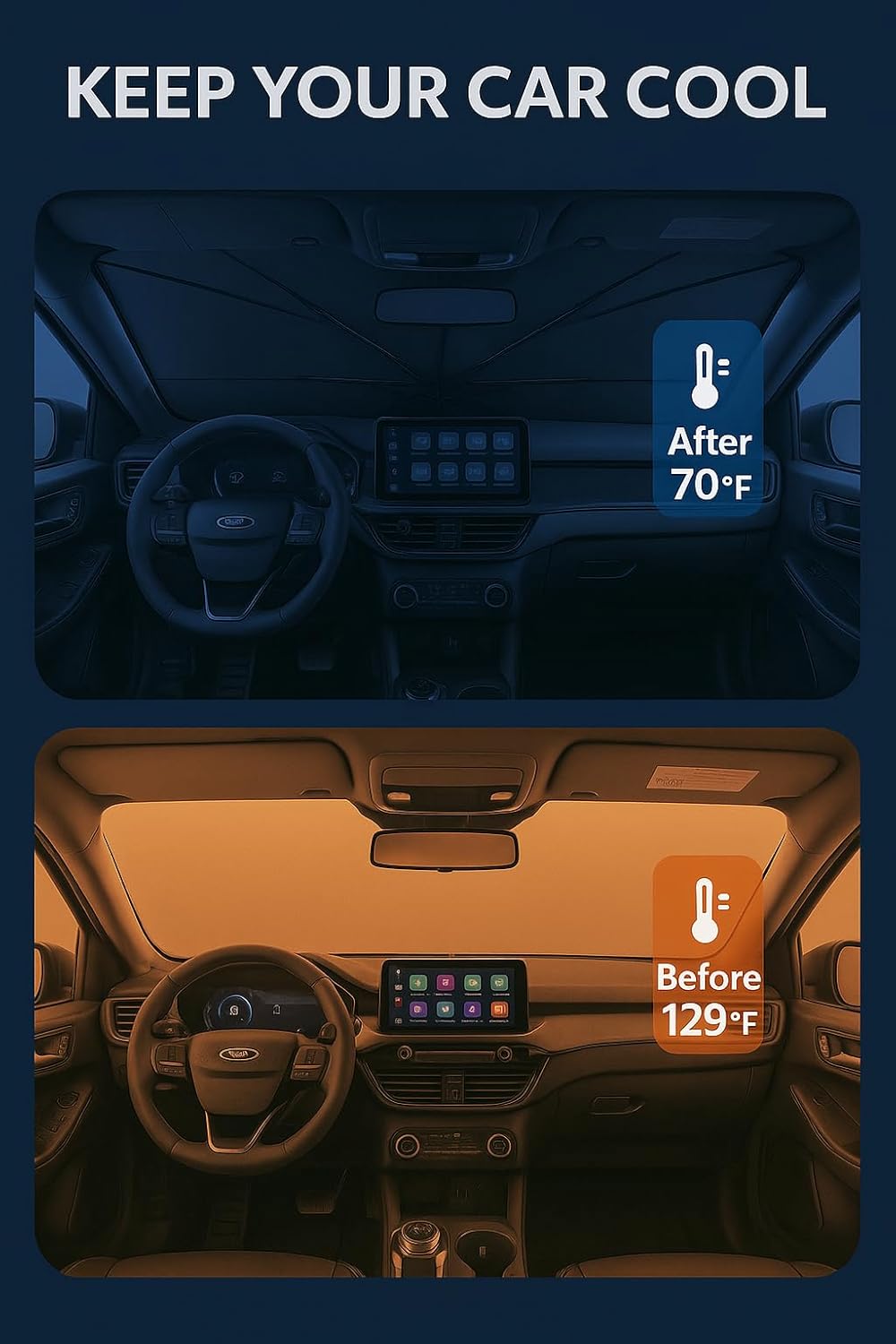 - Certified Sustainable. Customized Windshield Sunshade: Specially designed for the 2020-2025 Ford Explorer with precise mirror cutouts, providing 100% shading, carbon fiber handle, ensuring lightweight and durability while also having a fashionable feel. Our Explorer windshield sunshade can protect the interior of your car from various light damage and prevent dashboard and seat degradation.