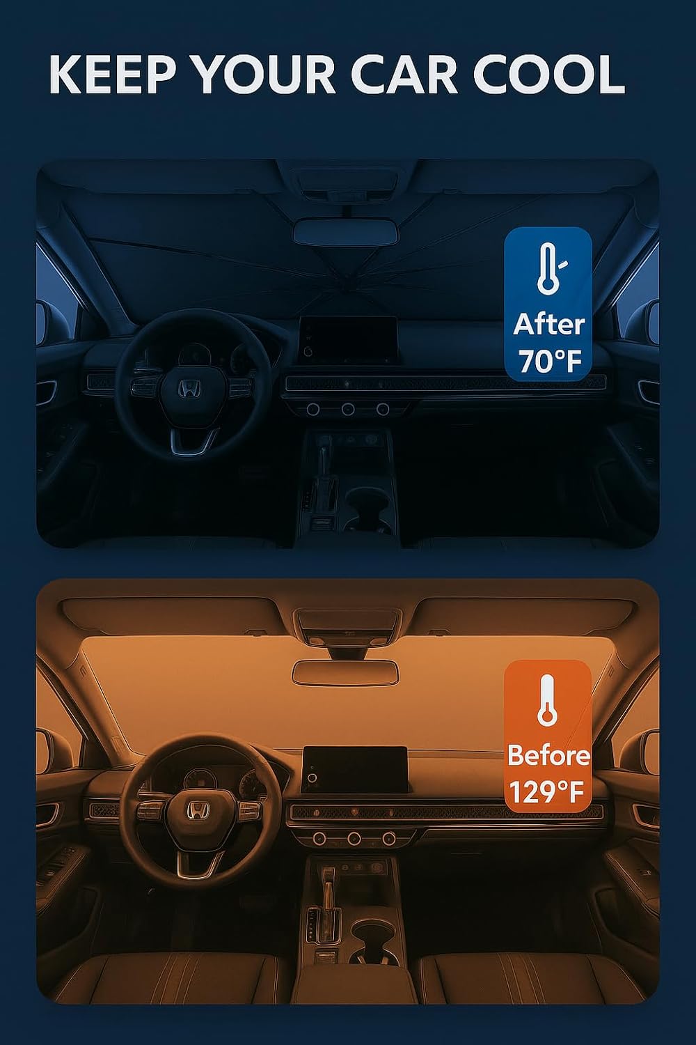 - Certified Sustainable. Customized Windshield Sunshade: Specially designed for the 2022-2025 Honda Civic with precise mirror cutouts, providing 100% shading, carbon fiber handle, ensuring lightweight and durability while also having a fashionable feel. Our Civic windshield sunshade can protect the interior of your car from various light damage and prevent dashboard and seat degradation.