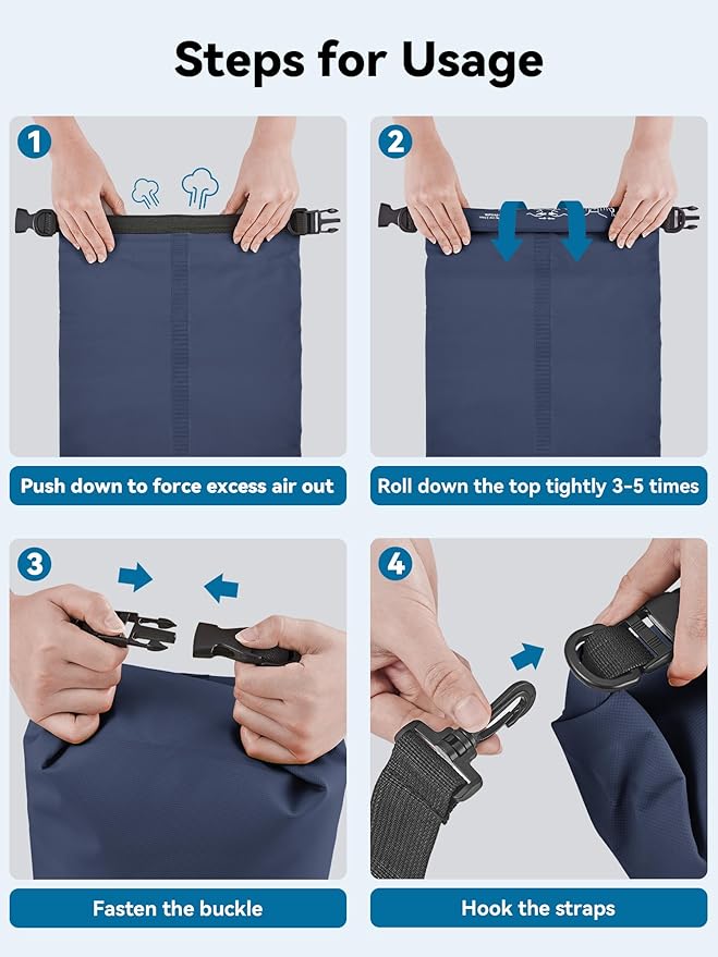 - Multifunctional - Equipped with adjustable shoulder straps for shoulder carrying and backpack, our dry bag is very convenient for different occasions like boating, rafting, kayaking, hiking, camping, fishing, mountaineering, etc. The lightweight dry bag won't weigh down your arms or shoulders