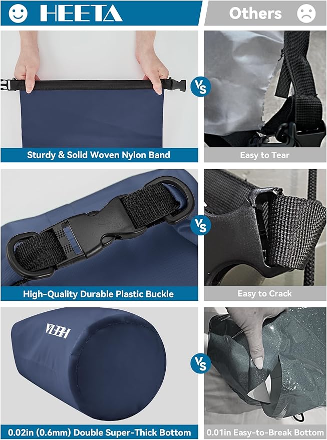 - Durable - Made of 0.02 in (0.5 mm) thick upgraded wear-resistant PVC material, it's suitable for all kinds of outdoor activities. Waterproof bag is well adapted to various weather and environment