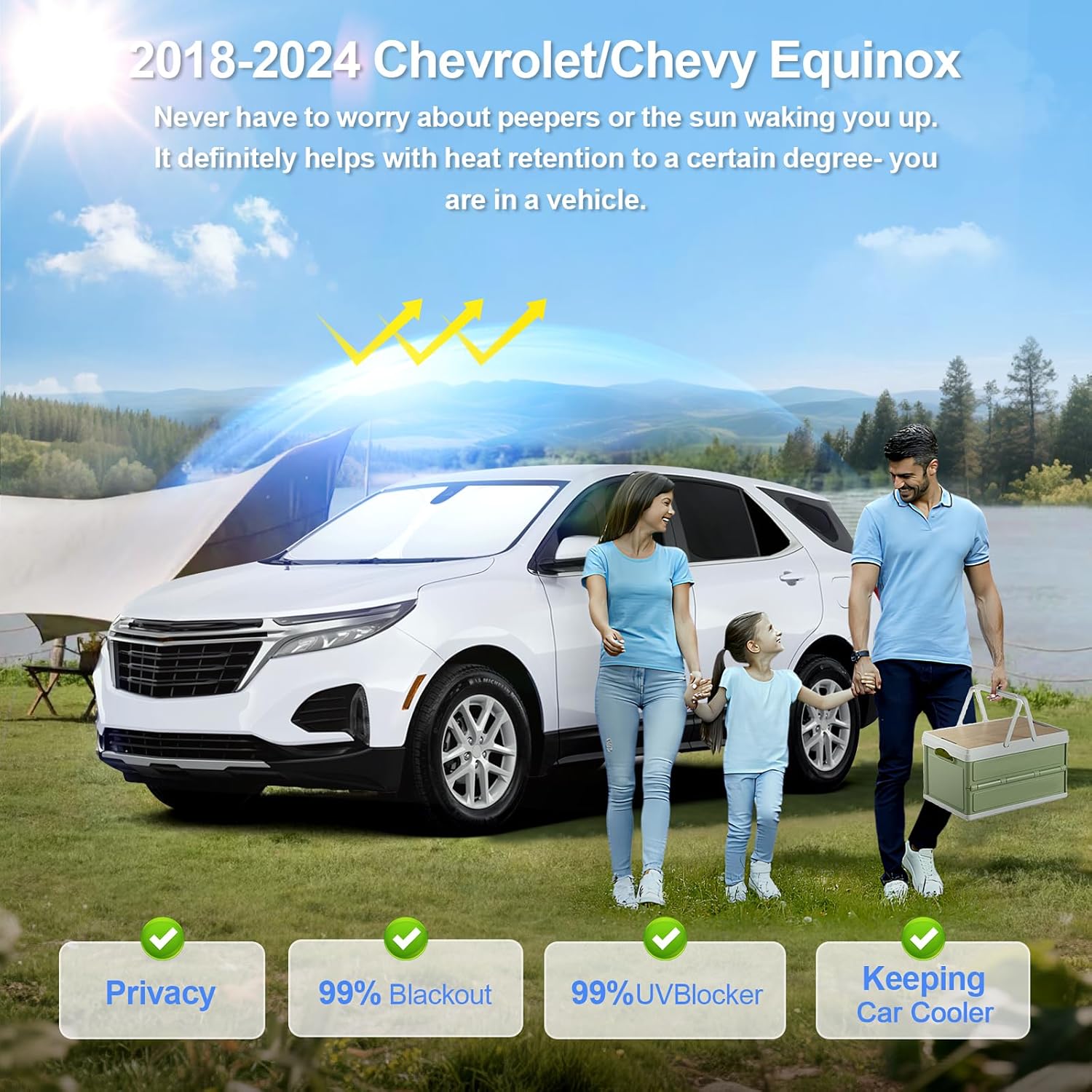 - Designed specifically:SHINELINERS full window sunshade is specially designed for Chevrolet/Chevy Equinox 2018 2019 2020 2021 2022 2023 2024.Provide your car with comprehensive UV and infrared protection, not only keeping the interior cool in hot weather but also extending the lifespan of the car's interior