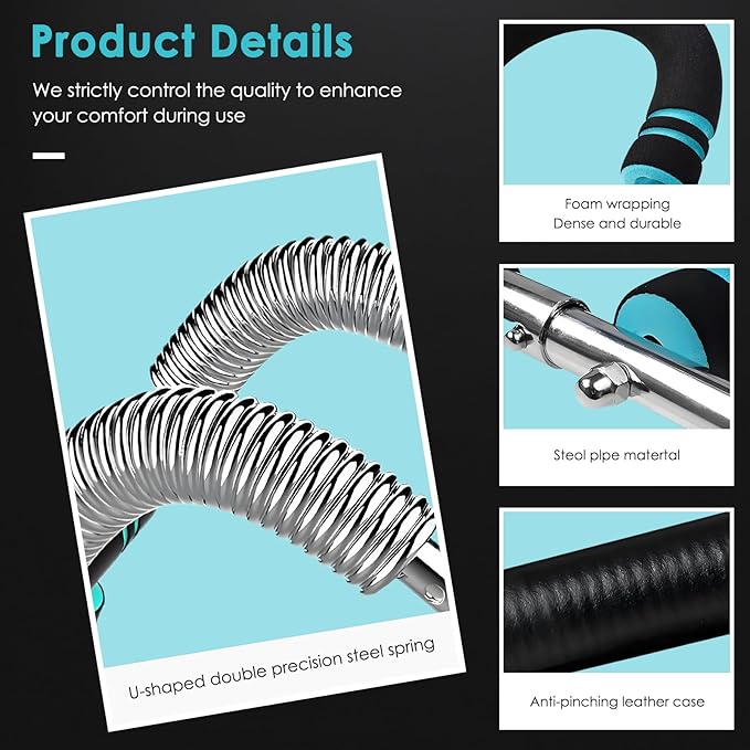 - Durable & Safe Construction: Crafted with high-grade metal springs, the Twister Arm Trainer combines stability and smooth motion. Reinforced leather and anti-slip handles ensure safety, while three intensity levels cater to all fitness levels