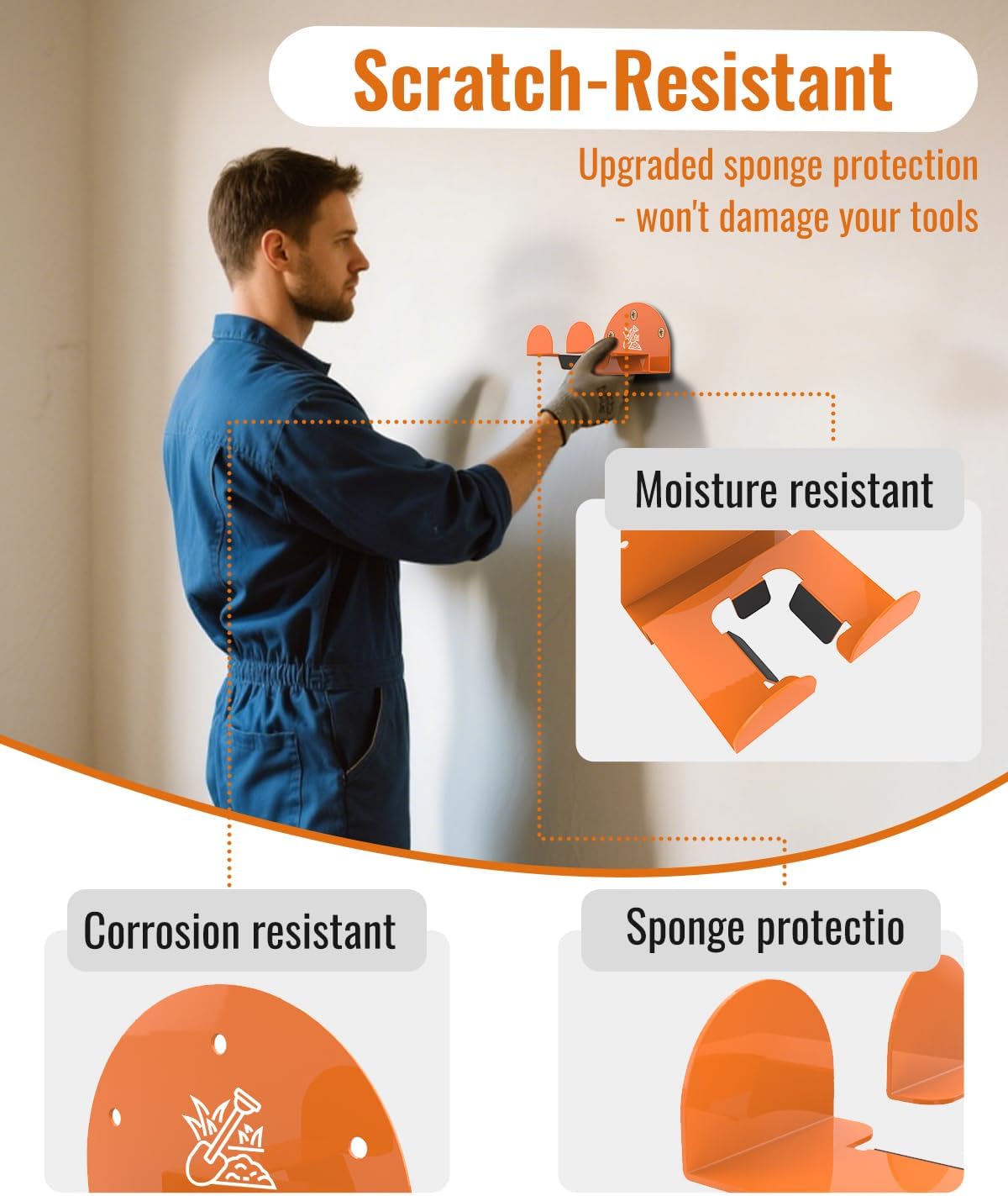- 🔥【Heavy-Duty Wall Rack – Alloy Steel Garden Tool Organizer】Built with 3mm thickened alloy steel, this garage organizer delivers 30% higher load capacity (180LB) than standard racks. The rust-proof powder coating ensures durability in humid garages/sheds, while the orange-painted finish adds visibility and extra anti-corrosion protection.Thick sponge liners protect chainsaw surfaces from metal scratches.
