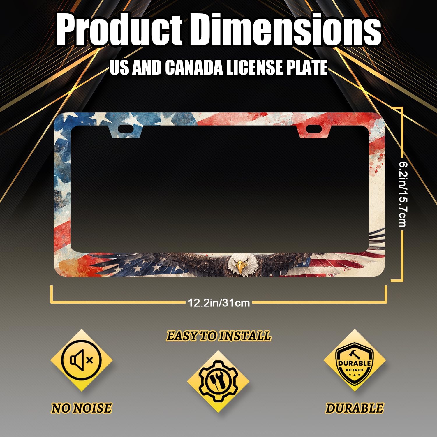 Eagle American Flag License Plate Frame Patriotic Eagle License Plate Holder Stainless Steel Funny Design with 2 Holes and Screws 12.3" x 6.3"