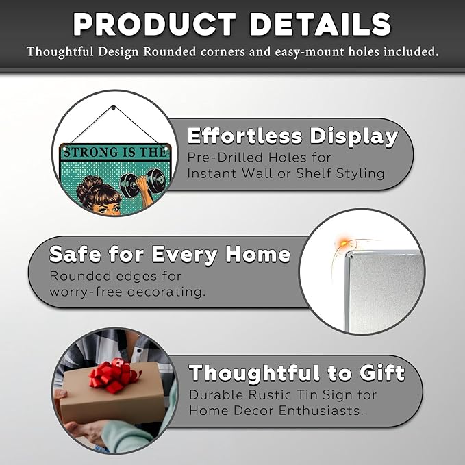 Gym Room Sign Weightlifting Metal Poster Strong Is The New Pretty Motivational Sign for Gym Workout for Home Fitness 12 * 8inch