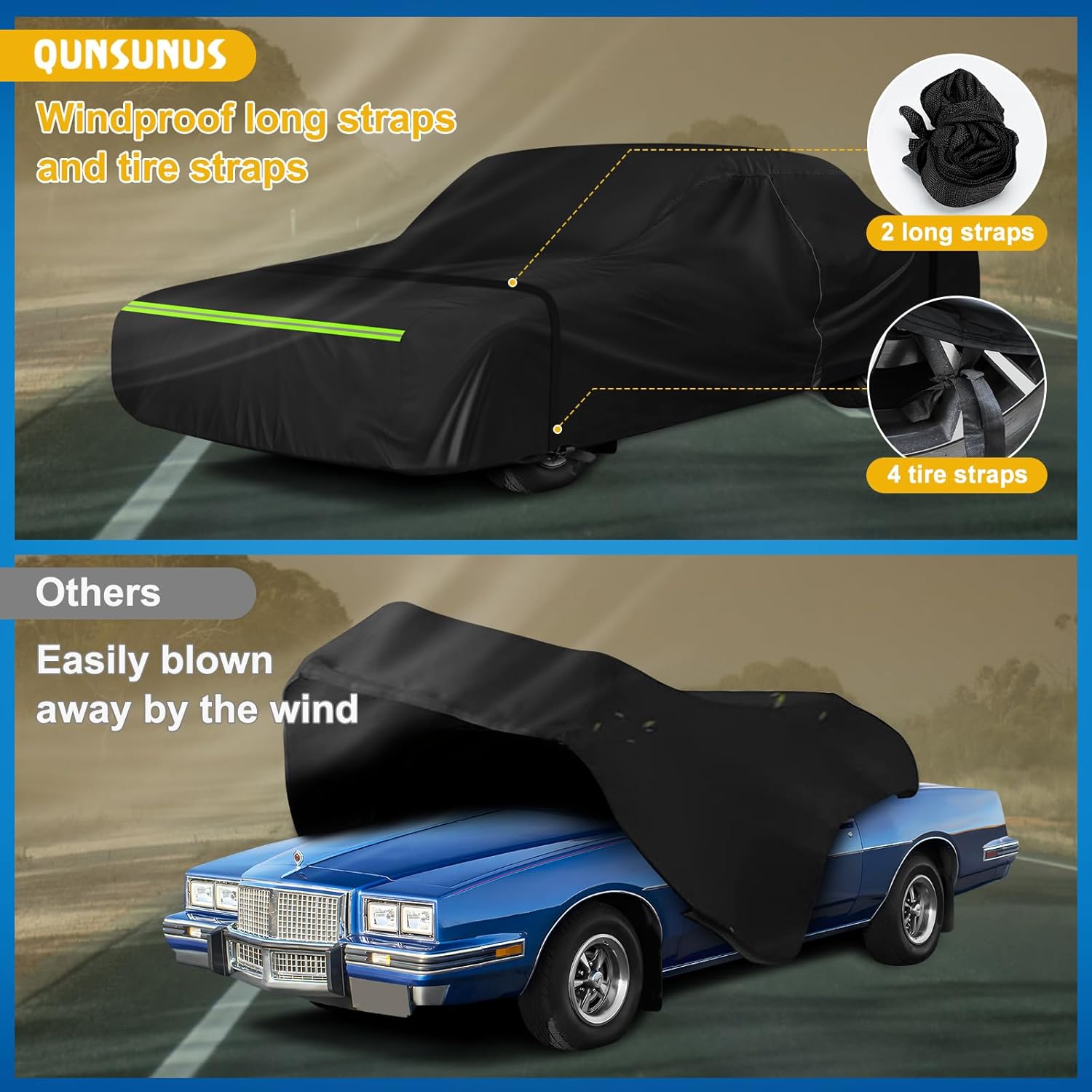 QUNSUNUS Waterproof Car Cover for Pontiac Grand Prix 1978-1996, Outdoor Car Covers with Zipper, All Weather Cover with Straps and Elastic Edges for Wind, Sun, UV and Dust Protection