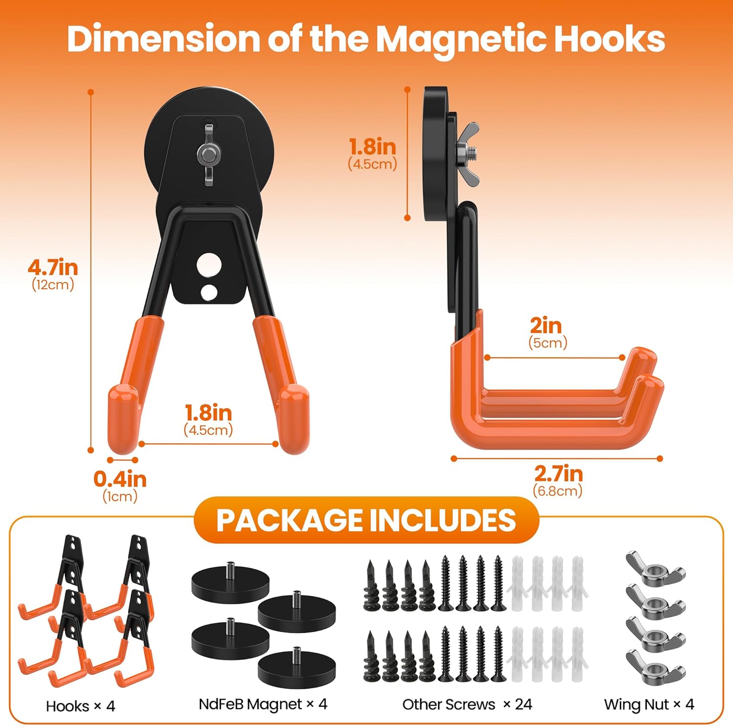- 【Multi-Pack Magnetic Hooks Heavy Duty】 Our strong magnetic utility hooks are upgraded with high-performance neodymium magnets, offering a versatile storage solution for homes, garages, workshops, kitchens, gardens, and more. With 4 Pack large magnetic hooks in one set, they meet daily storage needs for both light and heavy items, keeping your space organized and clutter-free